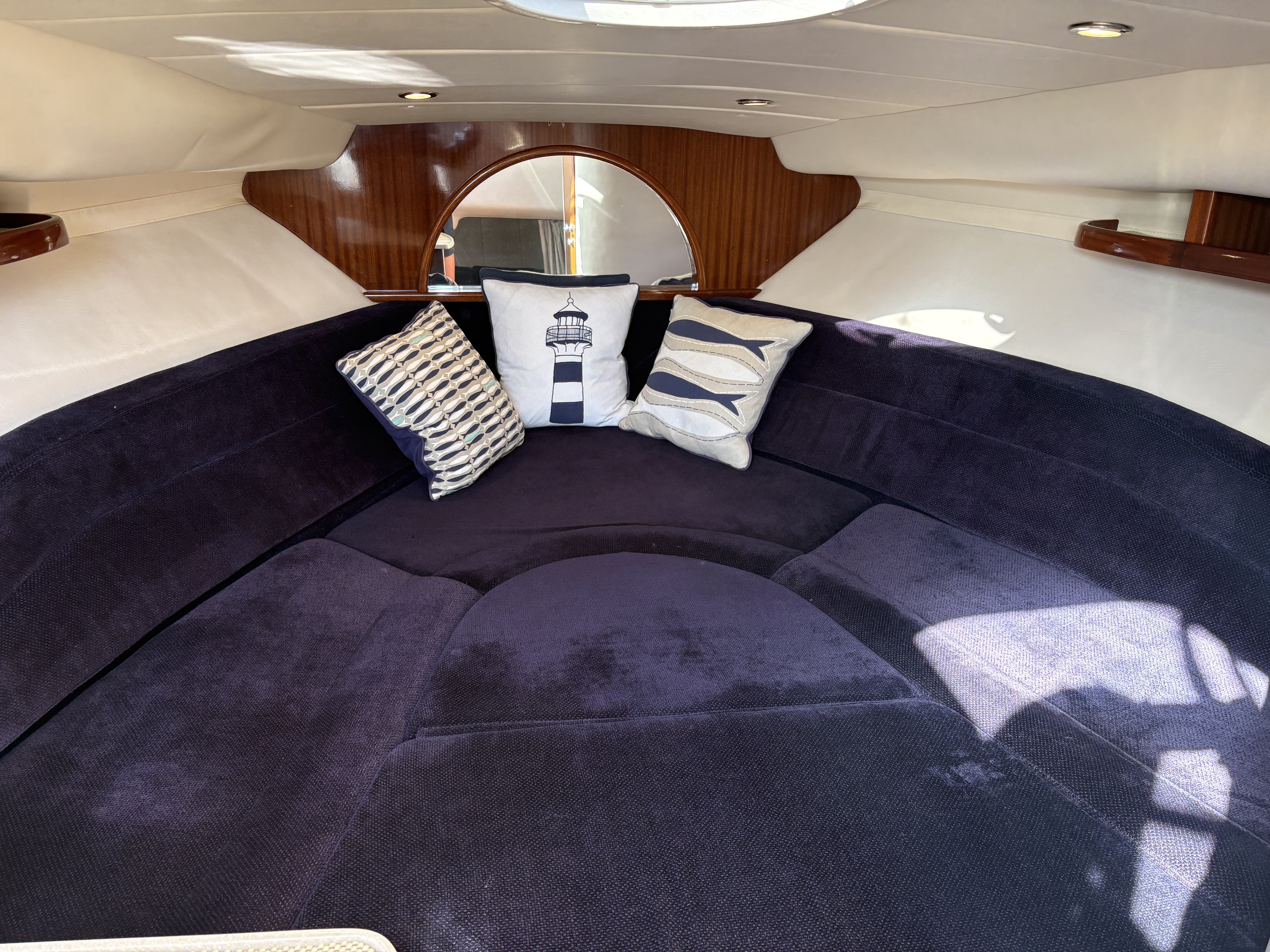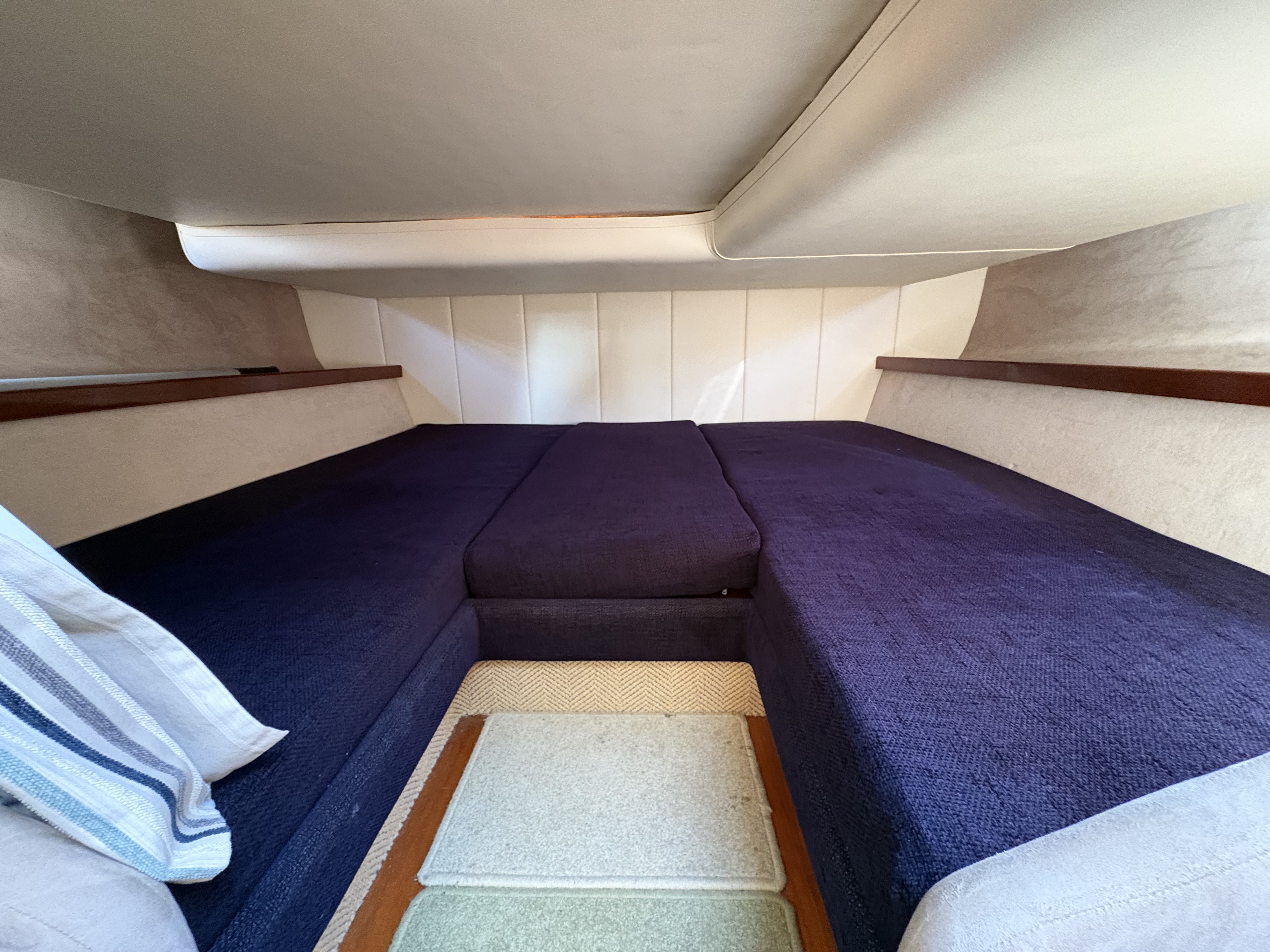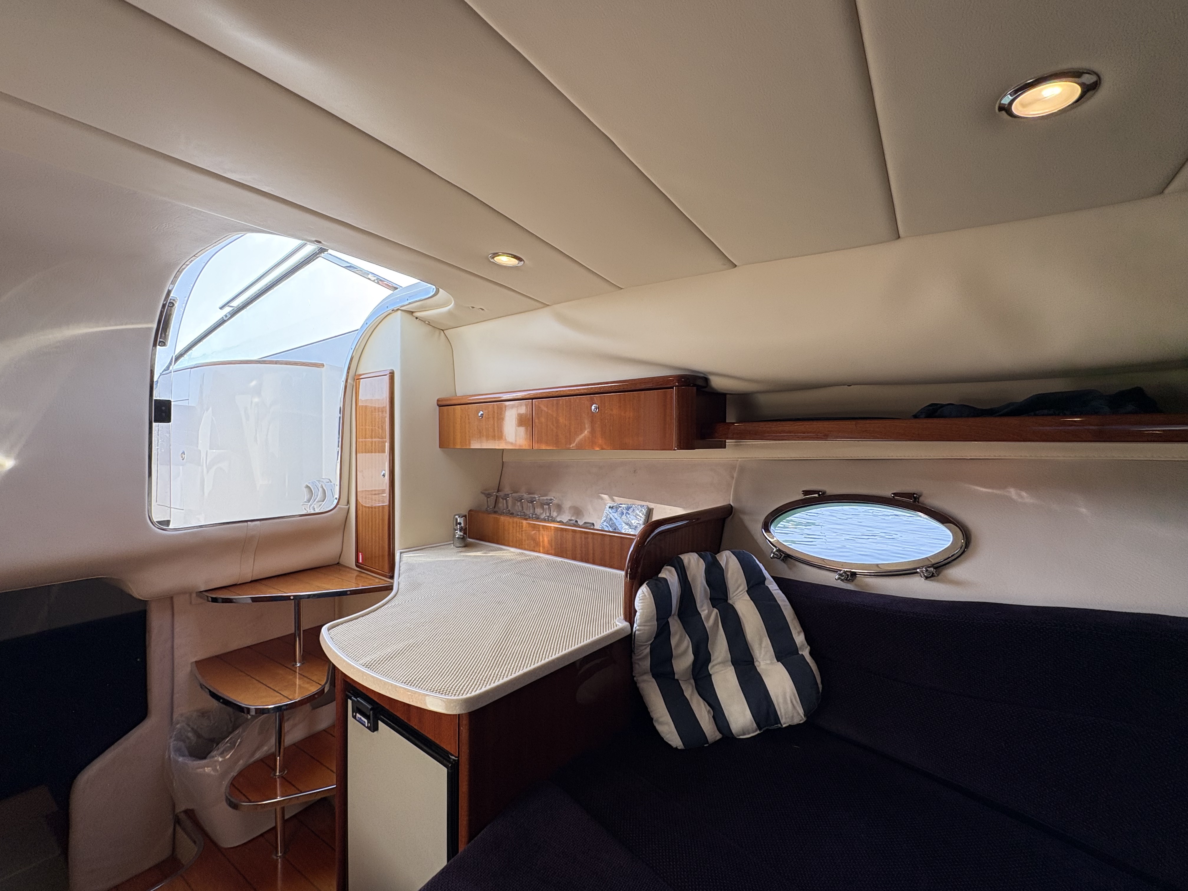 There are luxurious high gloss wood fittings in the galley area and she has a practical heads and a second double bed nestled in under the helm area. This boat comfortably sleeps 4 people.