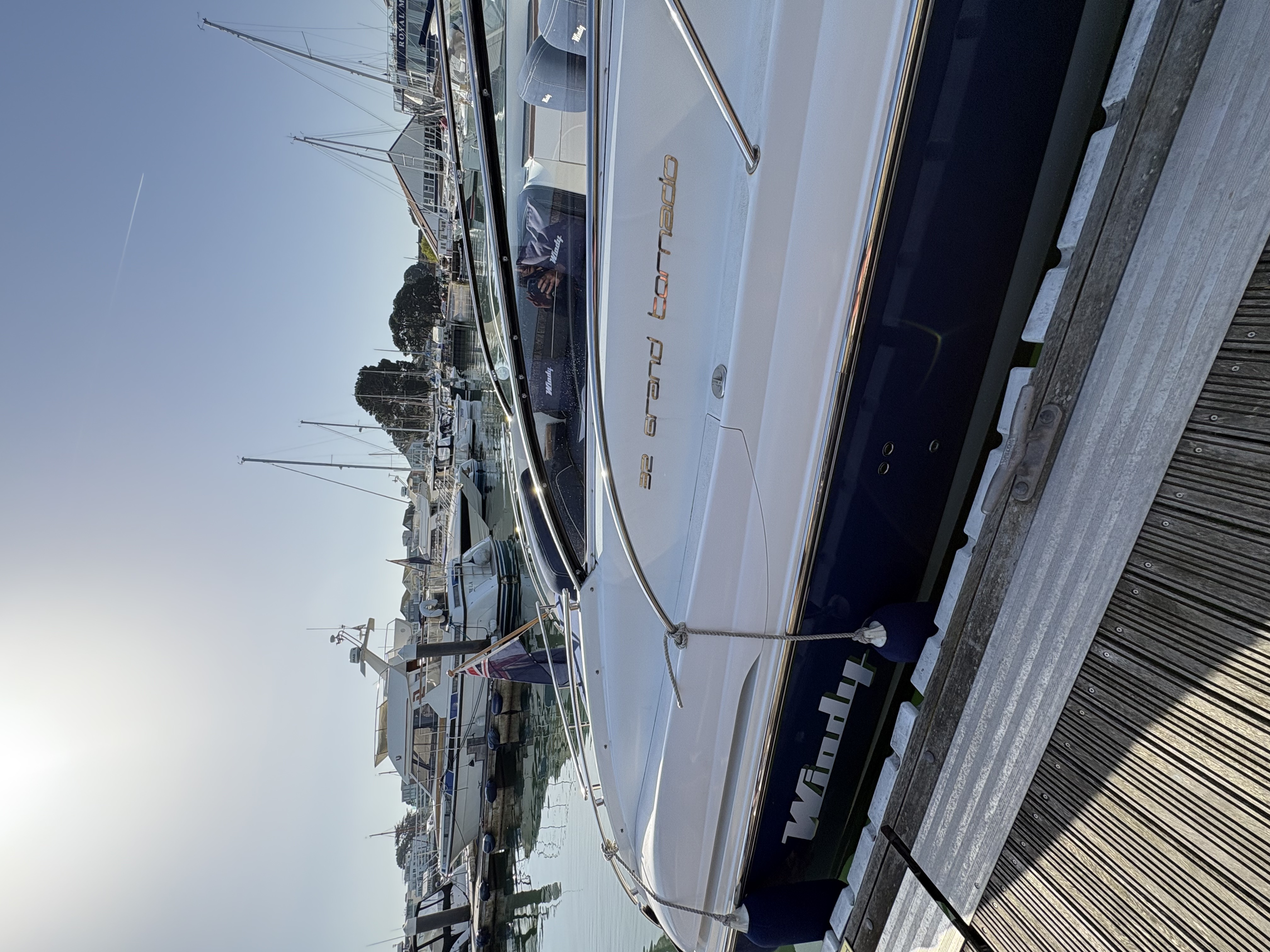 Windy 32 Grand Tornado - is a large and open day cruiser offering good accommodation for 4 people in two separate spaces. The boat has a Mid-cabin and a spacious berth in the forepeak, toilet with shower, kitchenette, teak table and a really spacious cockpit for socialising both day and evening.